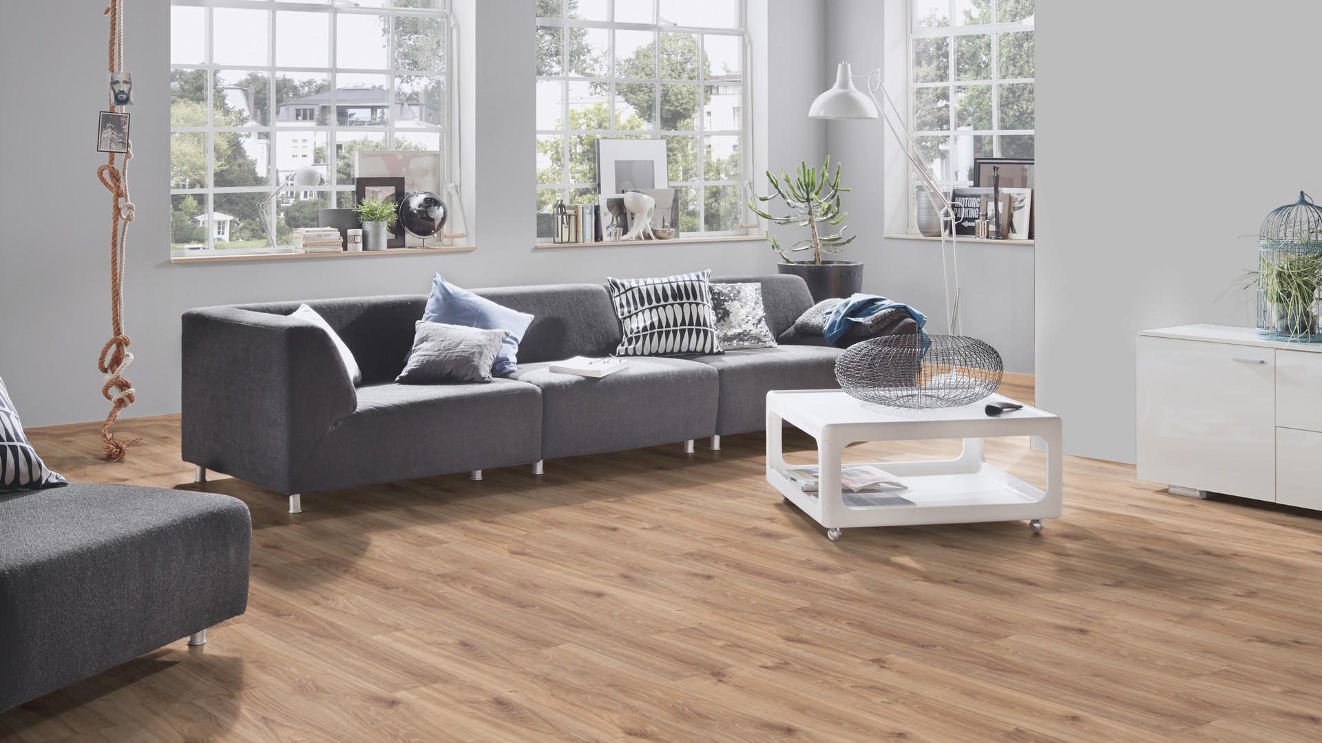 Деревянный ламинат Kronospan Canyon white точно воспроизводит красоту и структуру дуба. Он придает интерьеру неповторимый вид и ощущение природной теплоты.