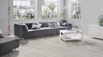 Нежный бежевый оттенок с текстурой натурального дуба позволяет создать теплый и светлый интерьер. Элегантность придает четырехсторонняя фаска, которая не только подчеркивает контуры отдельных ламелей, но и добавляет глубину и выразительность.