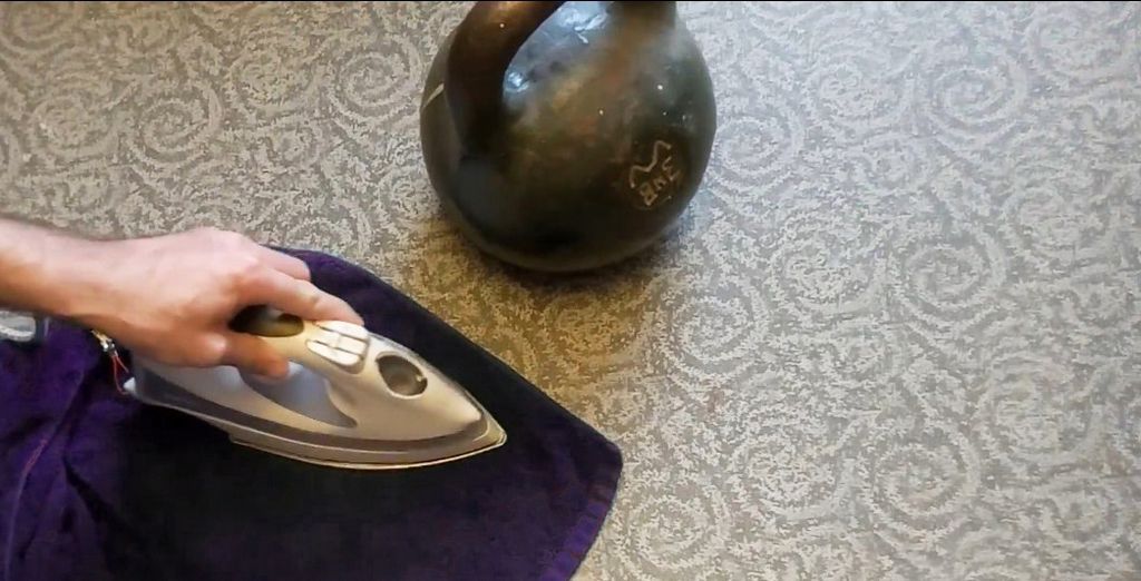 Пузырь помогут разгладить утюг и плотная ткань. Не забудьте установить груз