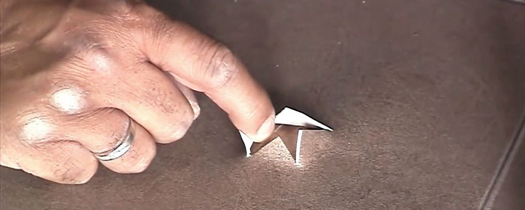 • Изнаночную поверхность в месте надреза намазывают клеем, плотно прижимают к базовому основанию.