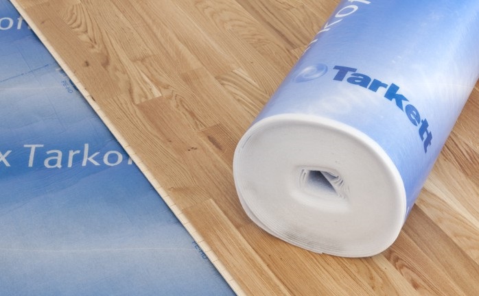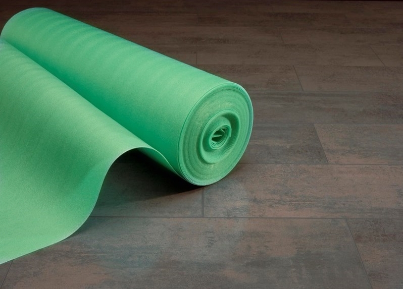 Перед укладкой ламината на основу кладут подложку – специальный материал из пенополистирола или полипропилена. Этот элемент позволит: